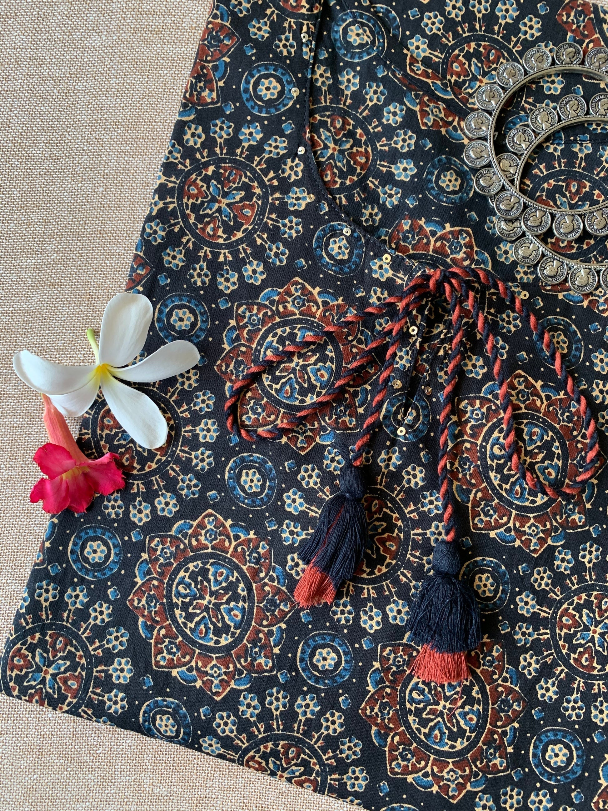"Chakra" Ajrakh Tassel Cotton Kurta